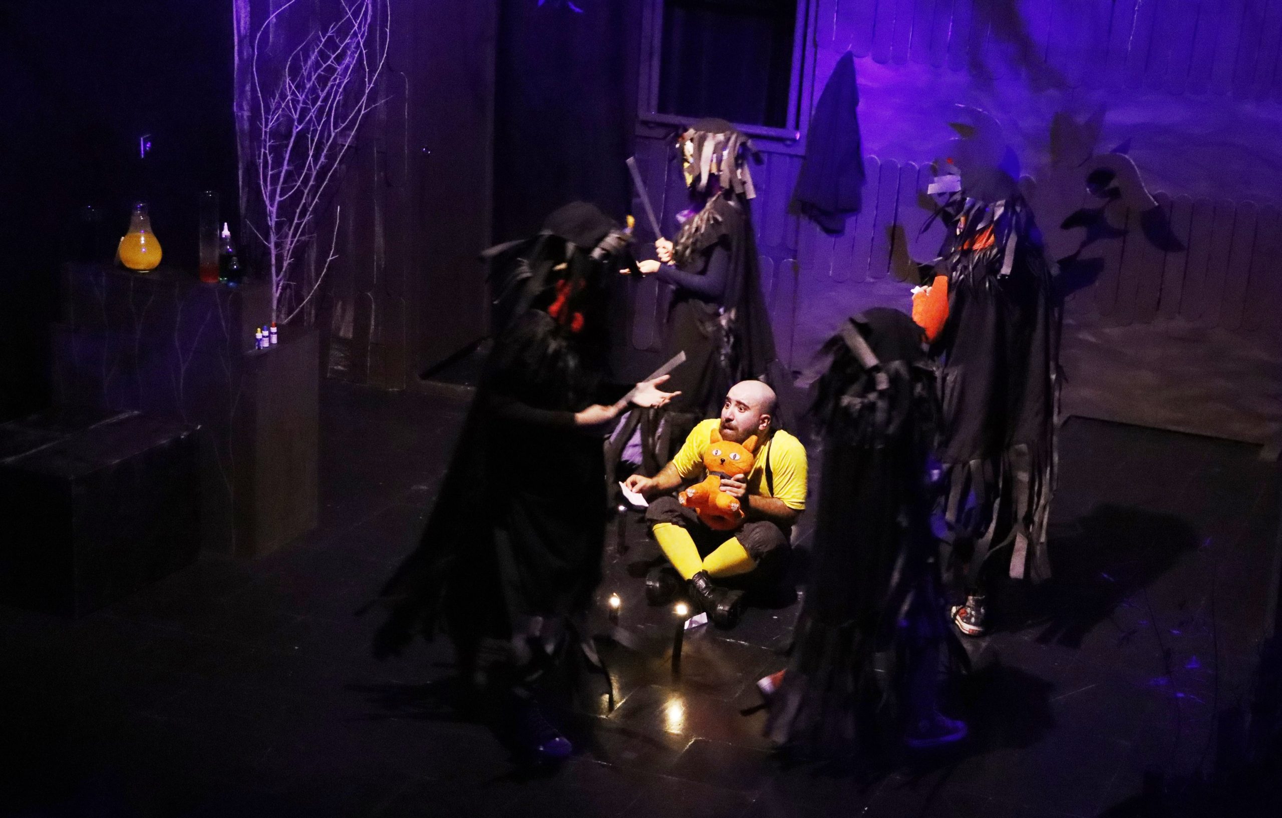 در خلاصهداستان این نمایش آمده:«آقاى هریسون یک معلم شیمى موفق است، ولى از جایگاهی که دارد راضی نیست. بنابراین طمع میکند و تصمیم میگیرد با اطلاعاتى که از ترکیب مواد دارد و خریداریِ چند کتاب عجیب، جادوگر بزرگى بشود. زمانی که او یک کلبه چوبى در جنگل میخرد، چهار نفر از شاگردانش سر از کلبه او درمیآورند و تصمیم میگیرند درس بزرگی به هریسون بدهند!».